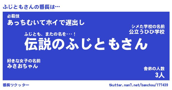 | 意味不明あだ名 | 『ペロリンふじとも』『永久保存ふじとも』 |