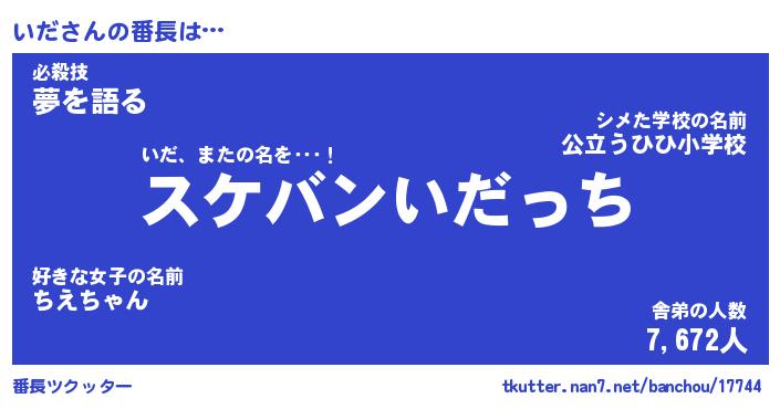 | ヒーロー風カッコイイあだ名 | 『スーパーイダ』『ウルトラいだマン』 |