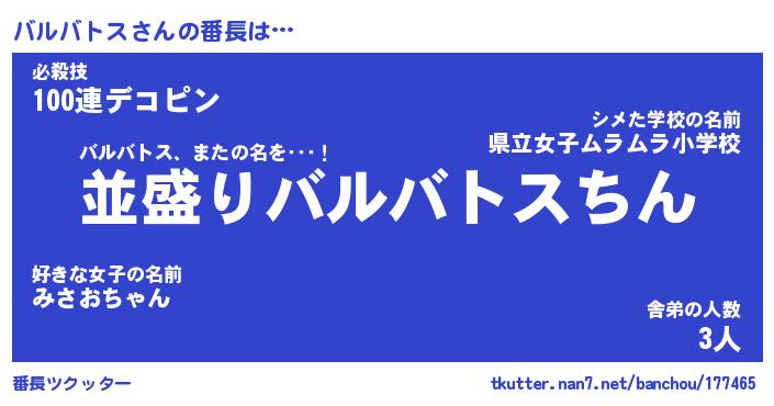 | 男性向けラノベタイトル風あだ名 | 『バルバトスの憂鬱』 |