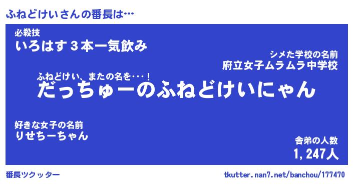 | ヘコむあだ名 | 『ふねにー』『なまこ酢』『ふね太郎』 |