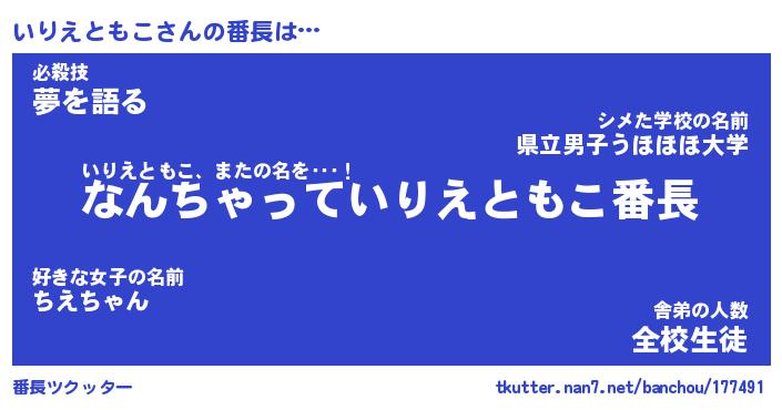 | ヒーロー風カッコイイあだ名 | 『スーパーイリエトモコ』『暗黒騎士イリ』 |