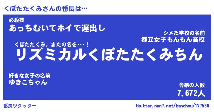 | 意味不明あだ名 | 『ペロリンくぼたたくみ』 |
