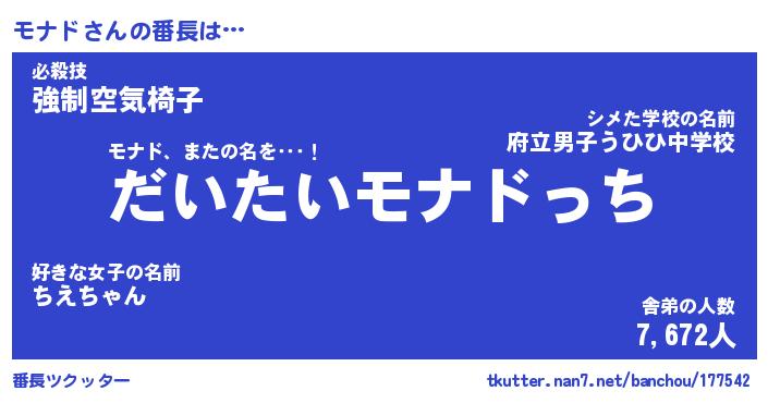 | ヒーロー風カッコイイあだ名 | 『スーパーモナド』『ウルトラモナドマン』 |