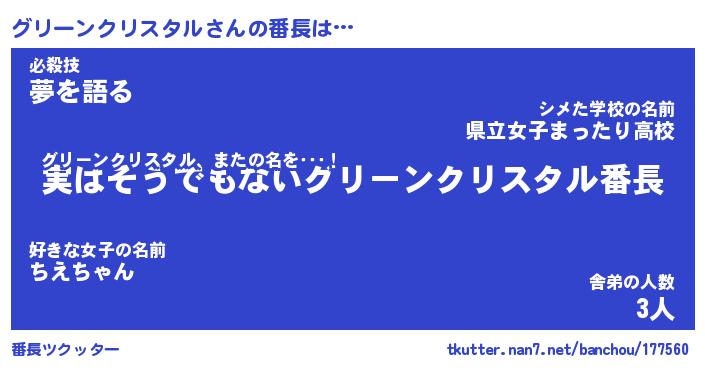 | 伝説のあだ名 | 『封印されしスナイパーグリーンクリスタル』 |