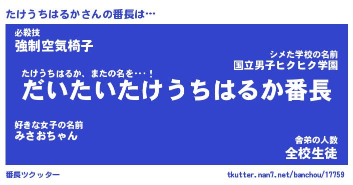 | 男性向けラノベタイトル風あだ名 | 『たけうちはるかの憂鬱』 |
