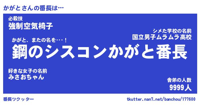 | ヒーロー風カッコイイあだ名 | 『スーパーカガト』『ウルトラかがとマン』 |