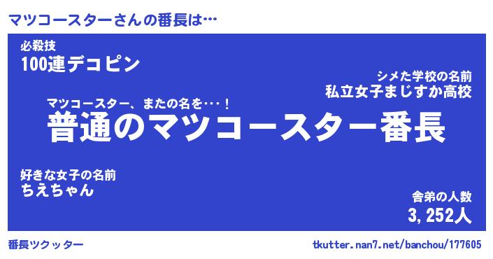 | ピコ太郎風あだ名 | 『マコ六郎』『ピマ一郎』『マツ史郎』 |