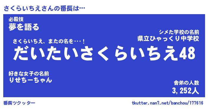 | 伝説のあだ名 | 『不死鳥のスナイパーさくらいちえ』 |
