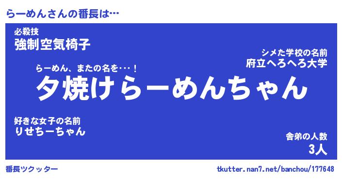 | 意味不明あだ名 | 『ペロリンらーめん』『永久保存らーめん』 |