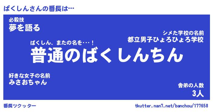 | 意味不明あだ名 | 『ペロリンばくしん』『永久保存ばくしん』 |