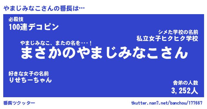 | ヒーロー風カッコイイあだ名 | 『スーパーヤマジミナコ』『幻影騎士ヤマ』 |