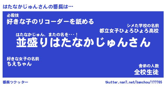 | 男性向けラノベタイトル風あだ名 | 『はたなかじゅんの憂鬱』 |