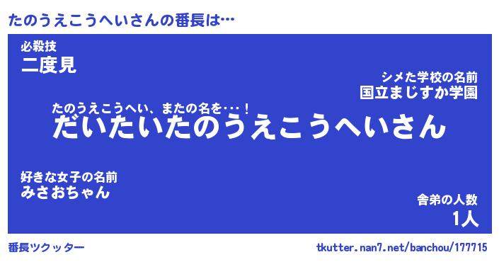 男性向けラノベタイトル風あだ名 | 『たのうえこうへいの憂鬱』 |