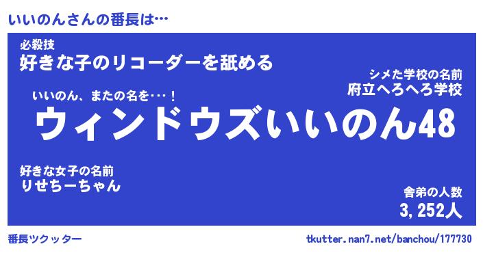 | ファンタジー風あだ名 | 『イイフェル』『エターナルイイノンー』 |