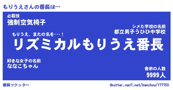 | ヒーロー風カッコイイあだ名 | 『スーパーモリウエ』『天弓騎士モリ』 |