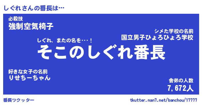 | ヒーロー風カッコイイあだ名 | 『スーパーシグレ』『ウルトラしぐれマン』 |