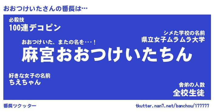 | 欧米人風あだ名 | 『マイケルおおつけいた』 |