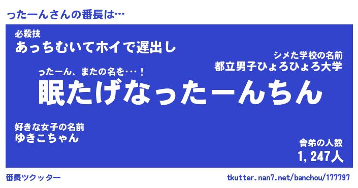 | ファンタジー風あだ名 | 『ッタフェル』『エターナルッターンー』 |