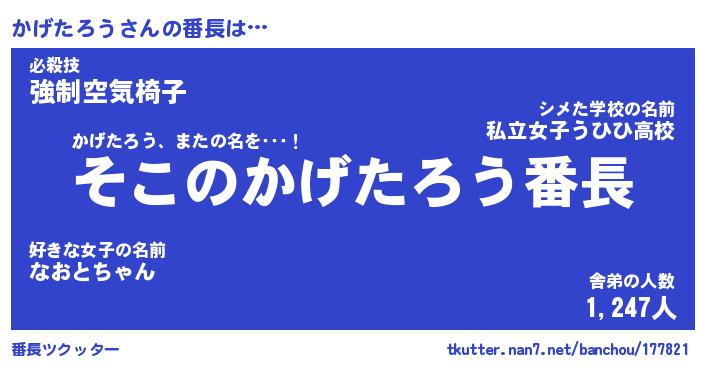 | ファンタジー風あだ名 | 『カゲフェル』『エターナルカゲタロウー』 |