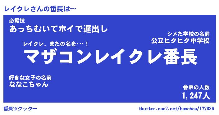 | ヒーロー風カッコイイあだ名 | 『スーパーレイクレ』『銀牙騎士レイ』 |