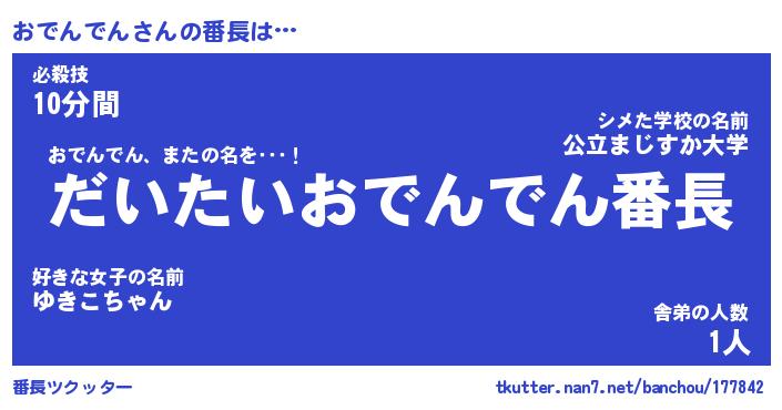 | 男性向けラノベタイトル風あだ名 | 『おでんでんの憂鬱』 |