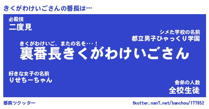 | 伝説のあだ名 | 『不死鳥のスナイパーきくがわけいご』 |