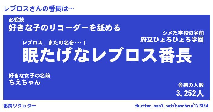 | 意味不明あだ名 | 『ペロリンレブロス』『永久保存レブロス』 |