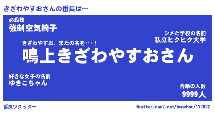 | 肩書あだ名 | 『きざわやすお社長』『きざわやすお班長』 |