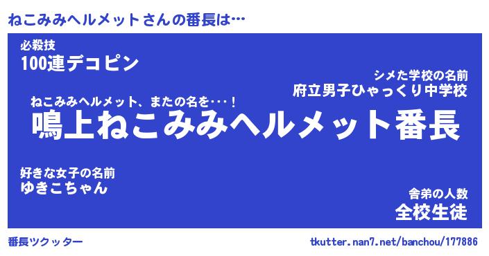 | 欧米人風あだ名 | 『マイケルねこみみヘルメット』 |