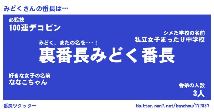 | ヘコむあだ名 | 『みどふぇ~』『つくし』『みどお』 |