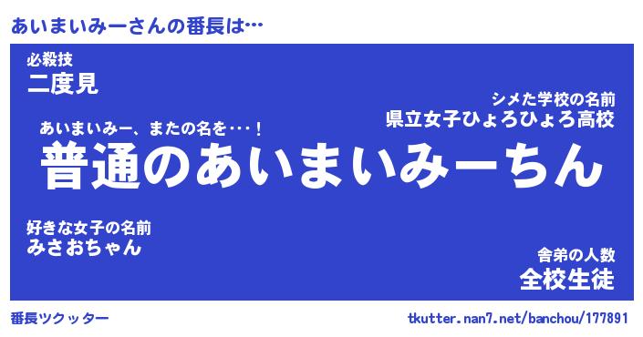 | ポケモン風あだ名 | 『アイチュウ』『アイマダネ』 |