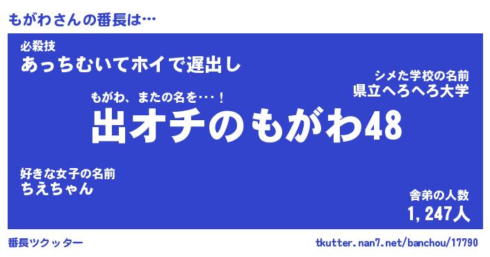 | ヘコむあだ名 | 『もがにー』『牛乳』『もがを』 |