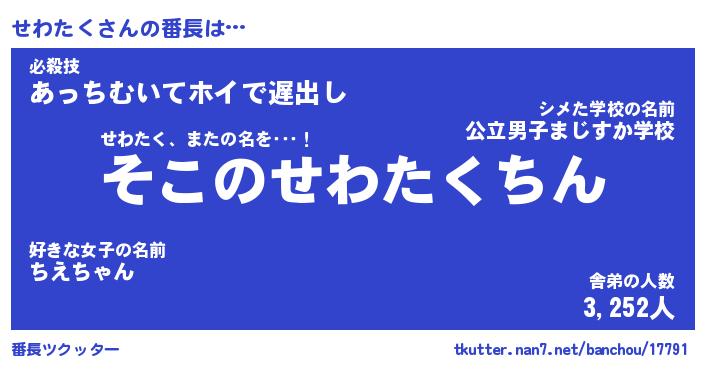 | ヒーロー風カッコイイあだ名 | 『スーパーセワタク』『天弓騎士セワ』 |