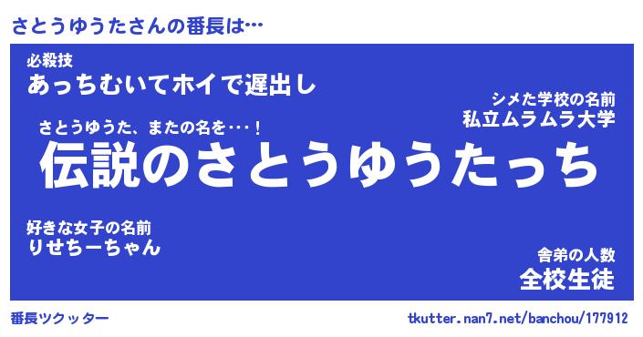 | 肩書あだ名 | 『さとうゆうた社長』『さとうゆうた班長』 |