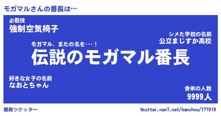 | 伝説のあだ名 | 『伝説のスナイパーモガマル』 |