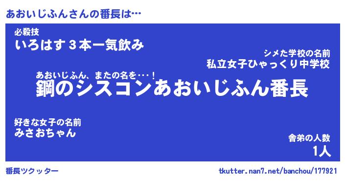 | 伝説のあだ名 | 『封印されしスナイパーあおいじふん』 |