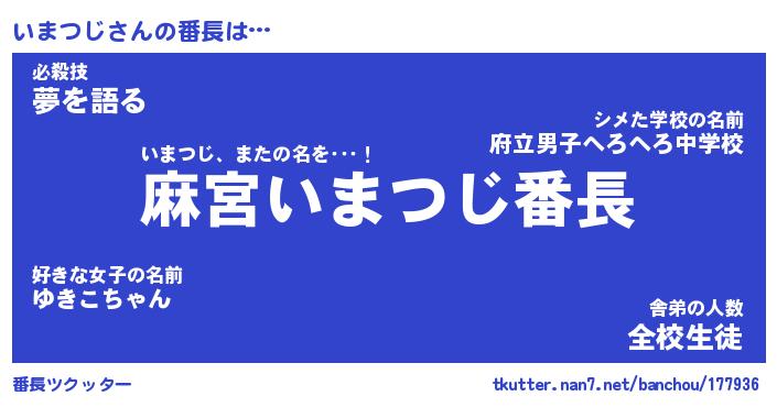 | 肩書あだ名 | 『いまつじ店長』『いまつじ総理大臣』 |