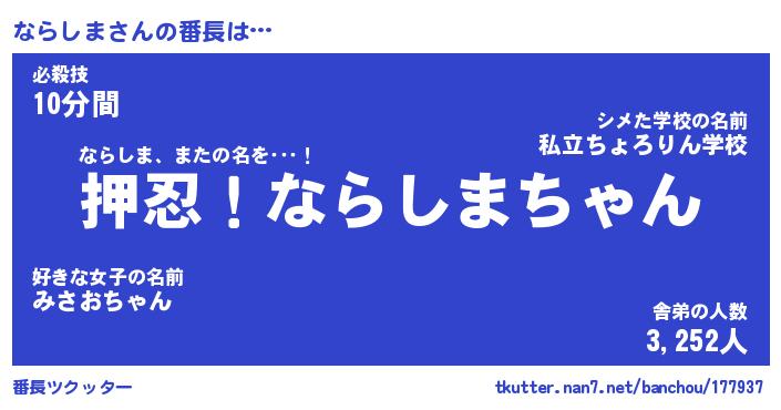 | 意味不明あだ名 | 『ペロリンならしま』『永久保存ならしま』 |
