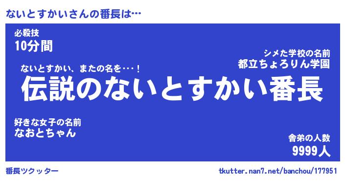| 伝説のあだ名 | 『伝説のスナイパーないとすかい』 |