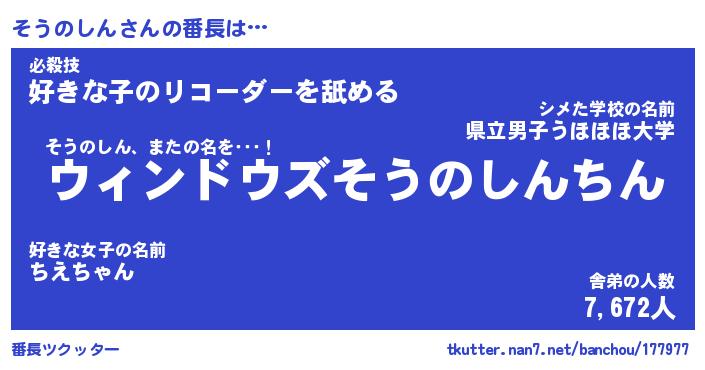 | 伝説のあだ名 | 『伝説のスナイパーそうのしん』 |