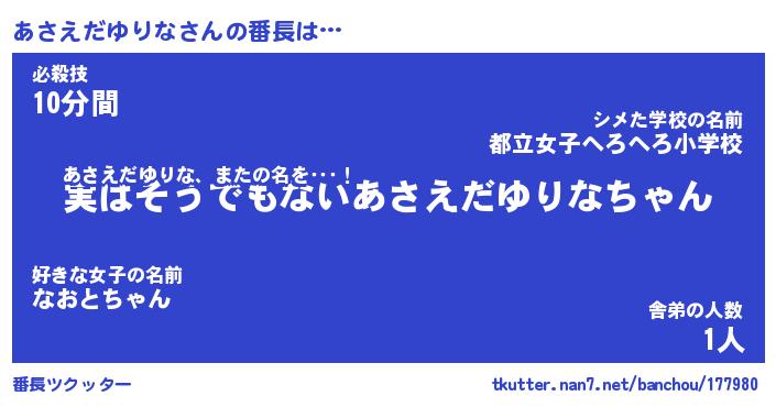 | 意味不明あだ名 | 『ペロリンあさえだゆりな』 |