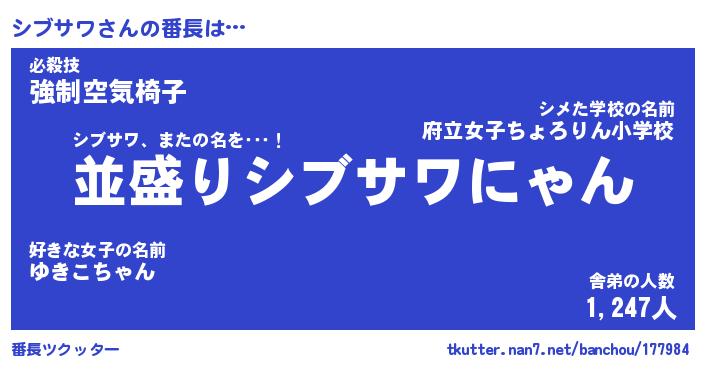 | ファンタジー風あだ名 | 『シブフェル』『エターナルシブサワー』 |