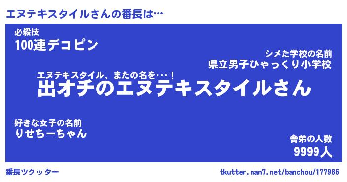 | 伝説のあだ名 | 『伝説の竜騎士エヌテキスタイル』 |
