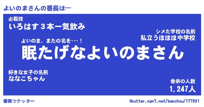 | 意味不明あだ名 | 『ペロリンよいのま』『永久保存よいのま』 |