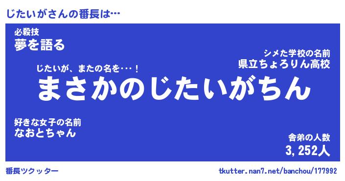 | ピコ太郎風あだ名 | 『ジコ五郎』『ピジ一郎』『ジタ五郎』 |