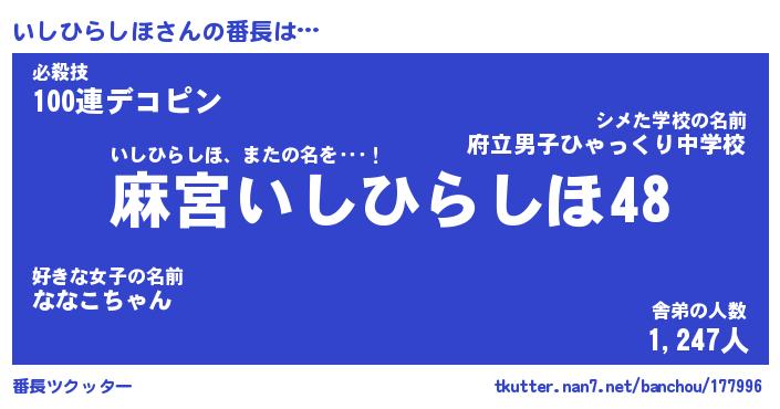 | ピコ太郎風あだ名 | 『イコ一郎』『ピイ八郎』『イシ次郎』 |