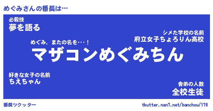 | 肩書あだ名 | 『めぐみ社長』『めぐみ国家主席』 |