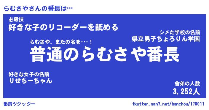 | 意味不明あだ名 | 『ペロリンらむさや』『永久保存らむさや』 |