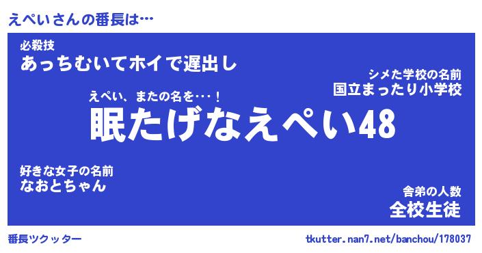 | ヘコむあだ名 | 『えぺもー』『なまこ酢』『えぺお』 |