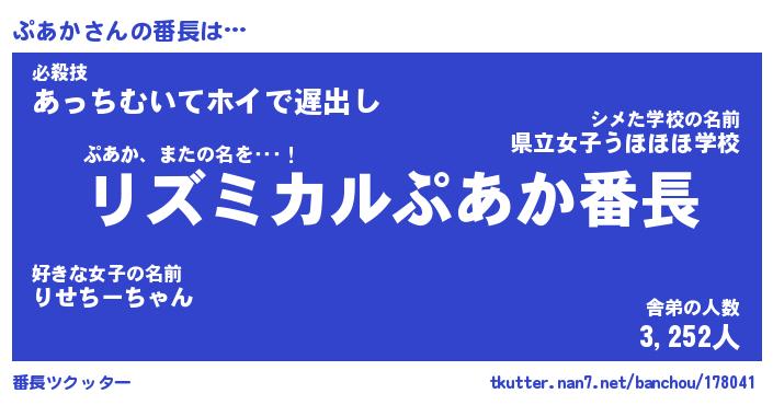 | 意味不明あだ名 | 『ペロリンぷあか』『ぷあかフォーエバー』 |